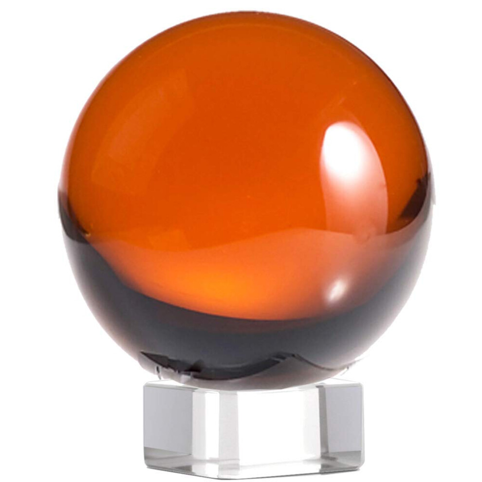 Amlong Crystal Meditation Divnation Sphere Feng Shui Crystal Ball Lensball Decorative Ball with Wooden Stand and Gift Box Amber 4.2 inch 110mm Dia