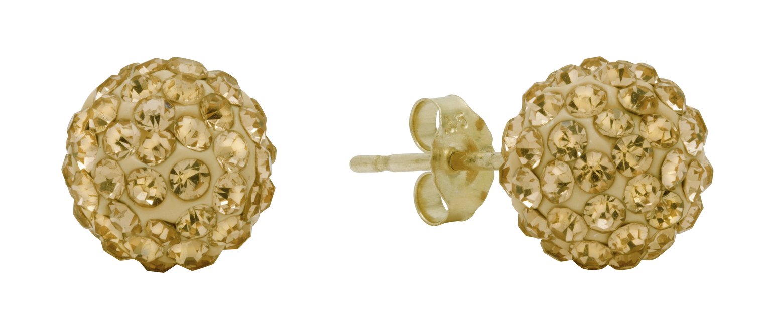 Revere 9ct Yellow Gold Champagne Crystal Ball Stud Earrings