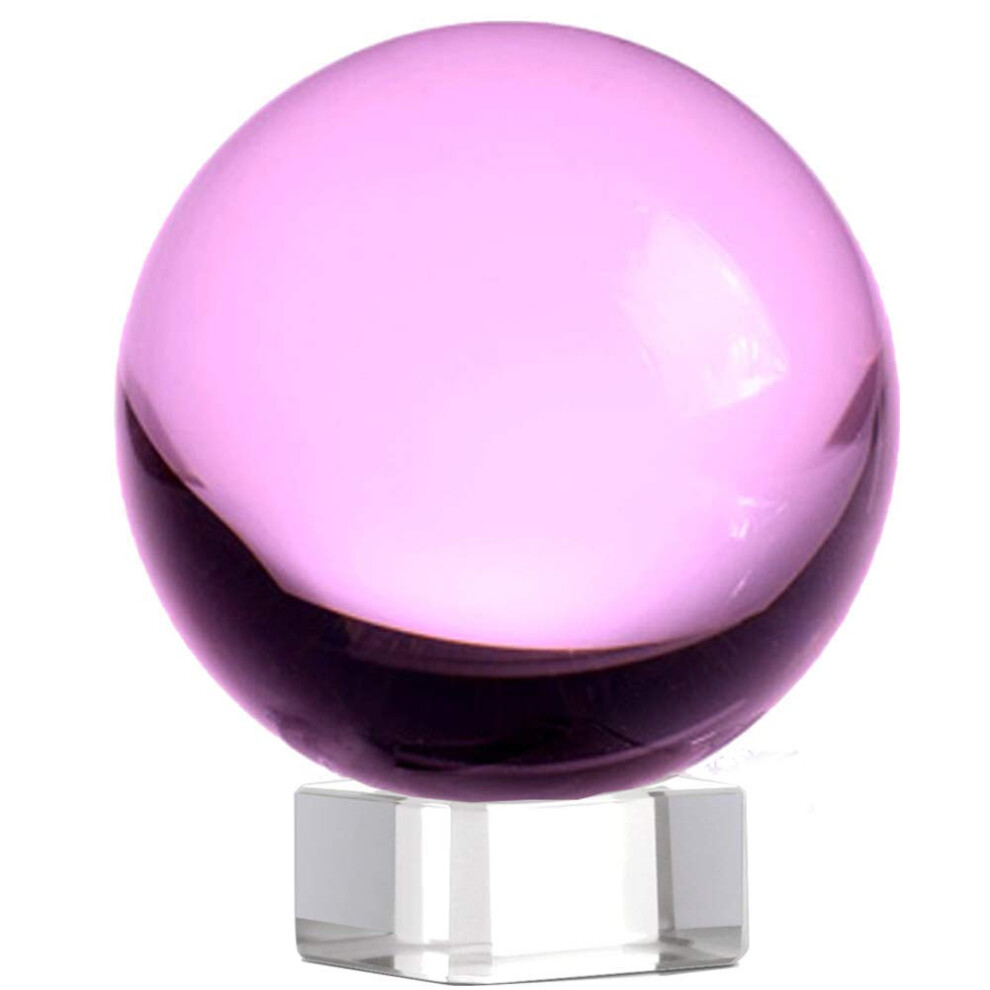 Amlong Crystal Meditation Divnation Sphere Feng Shui Crystal Ball Lensball Decorative Ball with Wooden Stand and Gift Box Pink 3.1 inch 80mm Diame