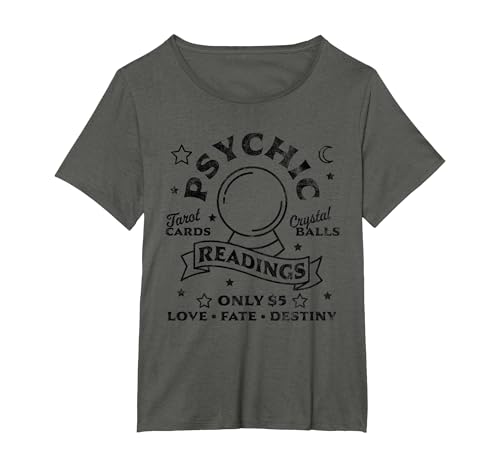 Gypsy Fortune Teller Psychic Readings Tarot Crystal Ball T-Shirt, Women, Silver Grey, 3X-Large