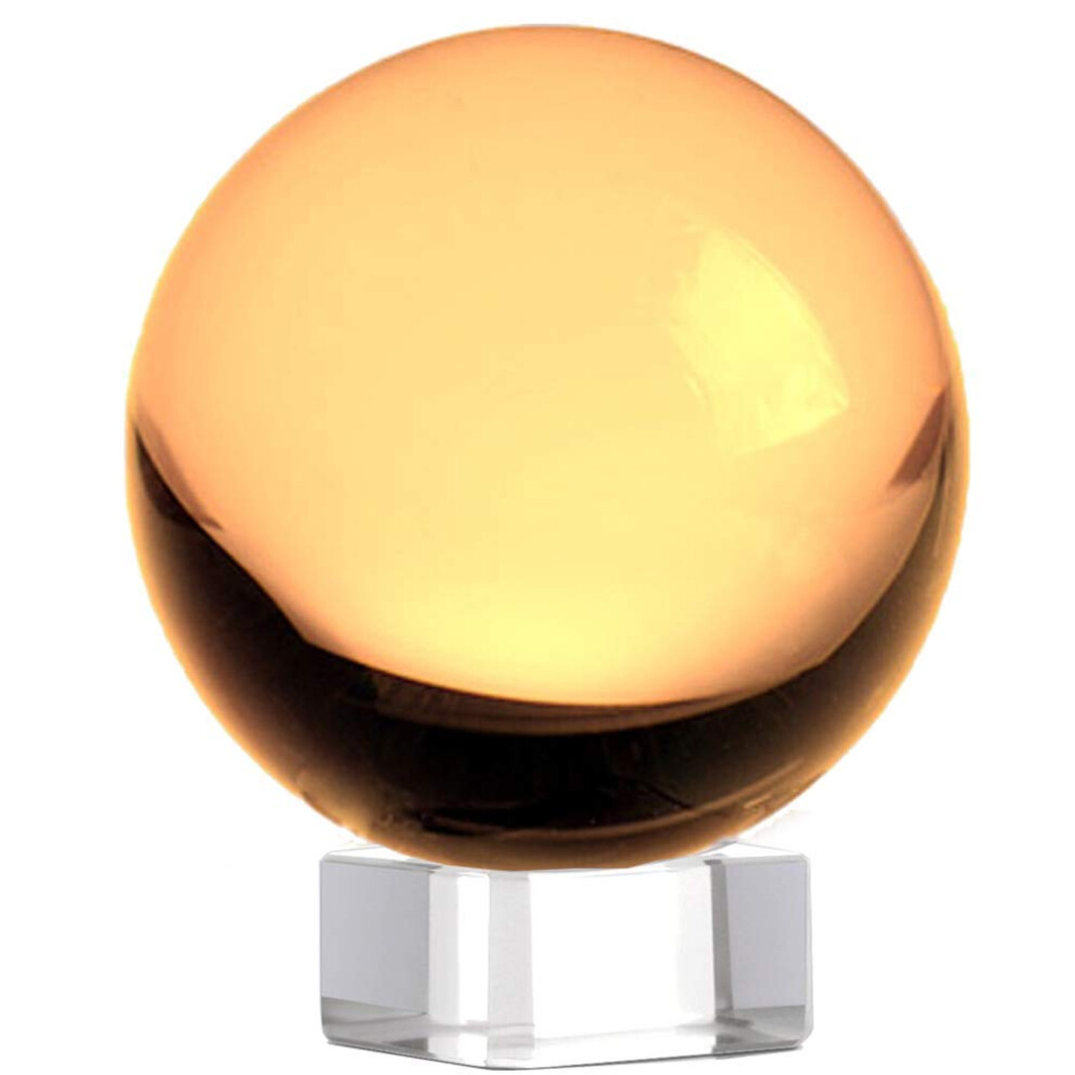 Amlong Crystal Meditation K9 Crystal Ball 3.25 inch 80mm Diameter for Photography Lensball Decorative Ball with Free Crystal Stand and Gift Box Yel