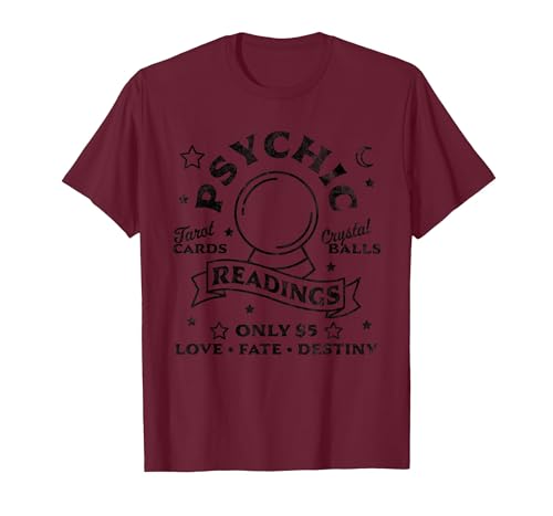 Gypsy Fortune Teller Psychic Readings Tarot Crystal Ball T-Shirt, Men, Burgundy, Medium