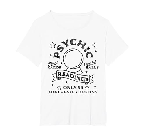 Gypsy Fortune Teller Psychic Readings Tarot Crystal Ball T-Shirt, Women's Plus, White, 1X
