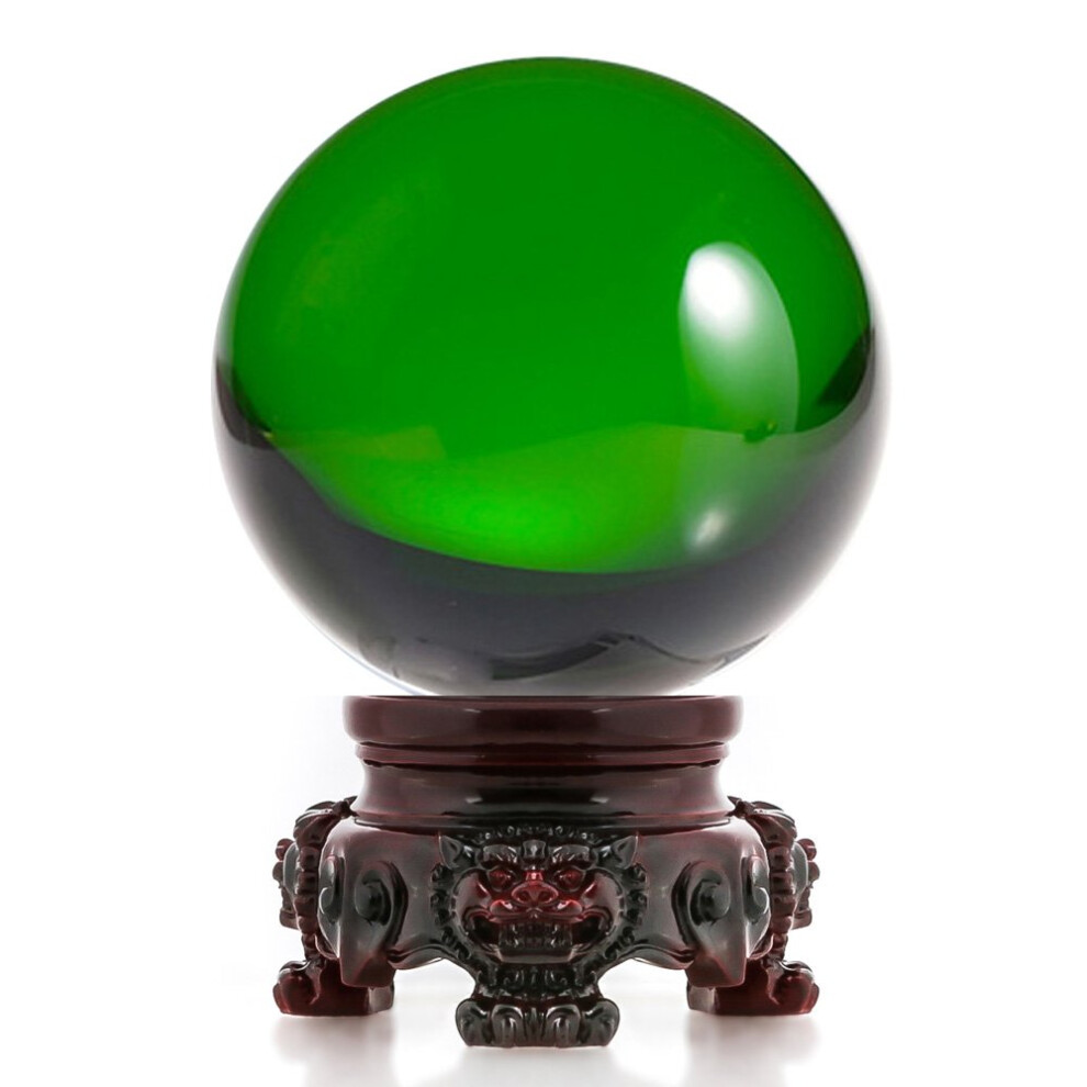 Amlong Crystal 3 inch (80mm) Green Crystal Ball with Redwood Lion Resin Stand and Gift Box for Decorative Ball, Lensball Photography, Gazing Divinati