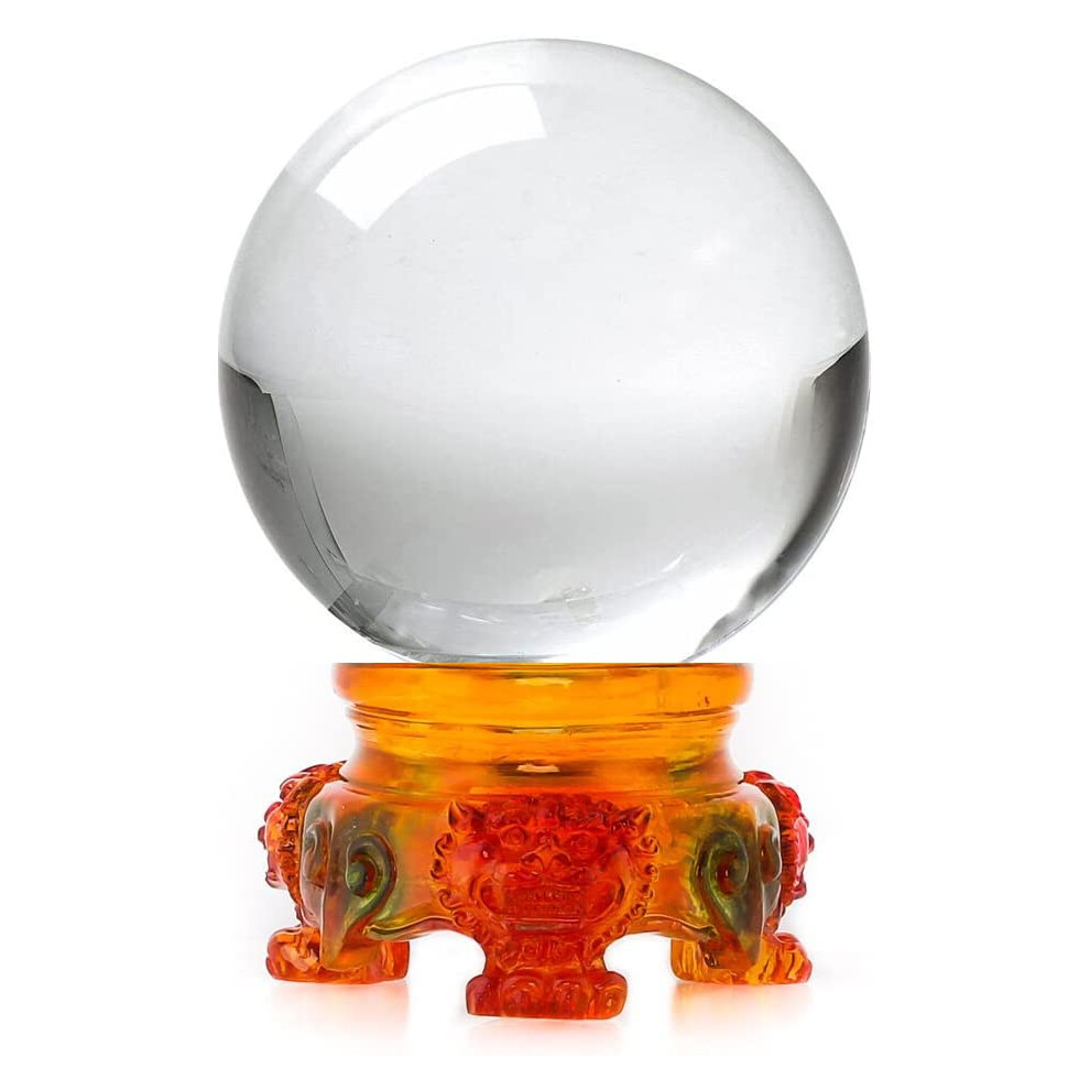 Amlong Crystal 3 inch (80mm) Clear Crystal Ball with Redwood Lion Resin Stand and Gift Box for Decorative Ball Lensball Photography Gazing Divinatio