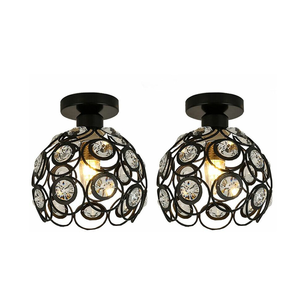 Luxurious Hallway Light Fixtures, Crystal Ceiling Lamps with Elegant Charm for Closets, Bathrooms, Laundry Rooms (2PCS, Black)