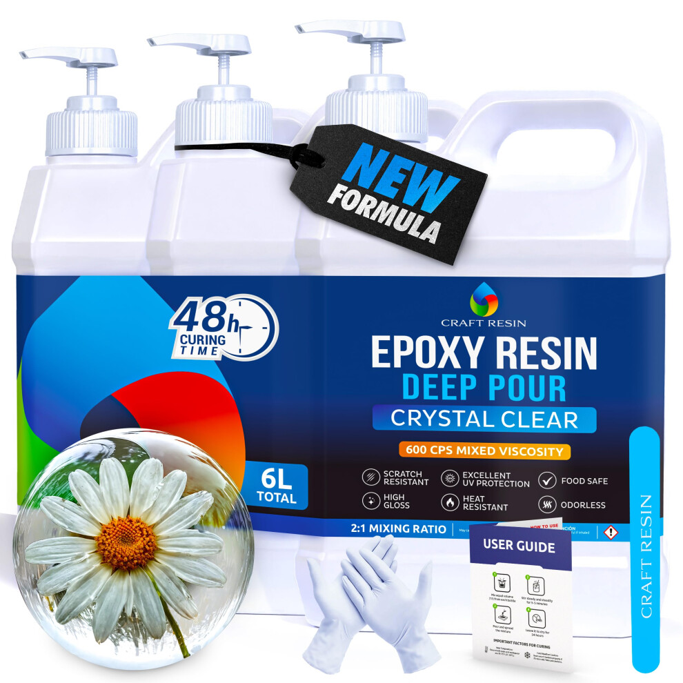 CRAFT RESIN 6L Crystal Clear Deep Pour Epoxy Resin Kit with Pumps - Food Safe & UV Resistant Best for DIY, Art, River Table, Wood, Flower, Mould Casting Resin Epoxy Kit - for Beginners & Pros