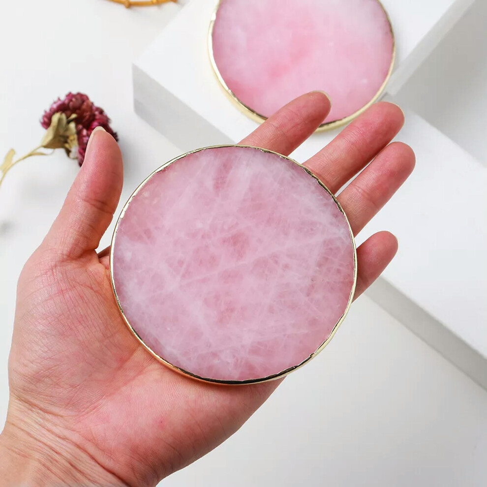 RSAMD Natural Pink Crystal Rose Quartz Drink Cup Coaster Gemstone Ashtray Ornaments