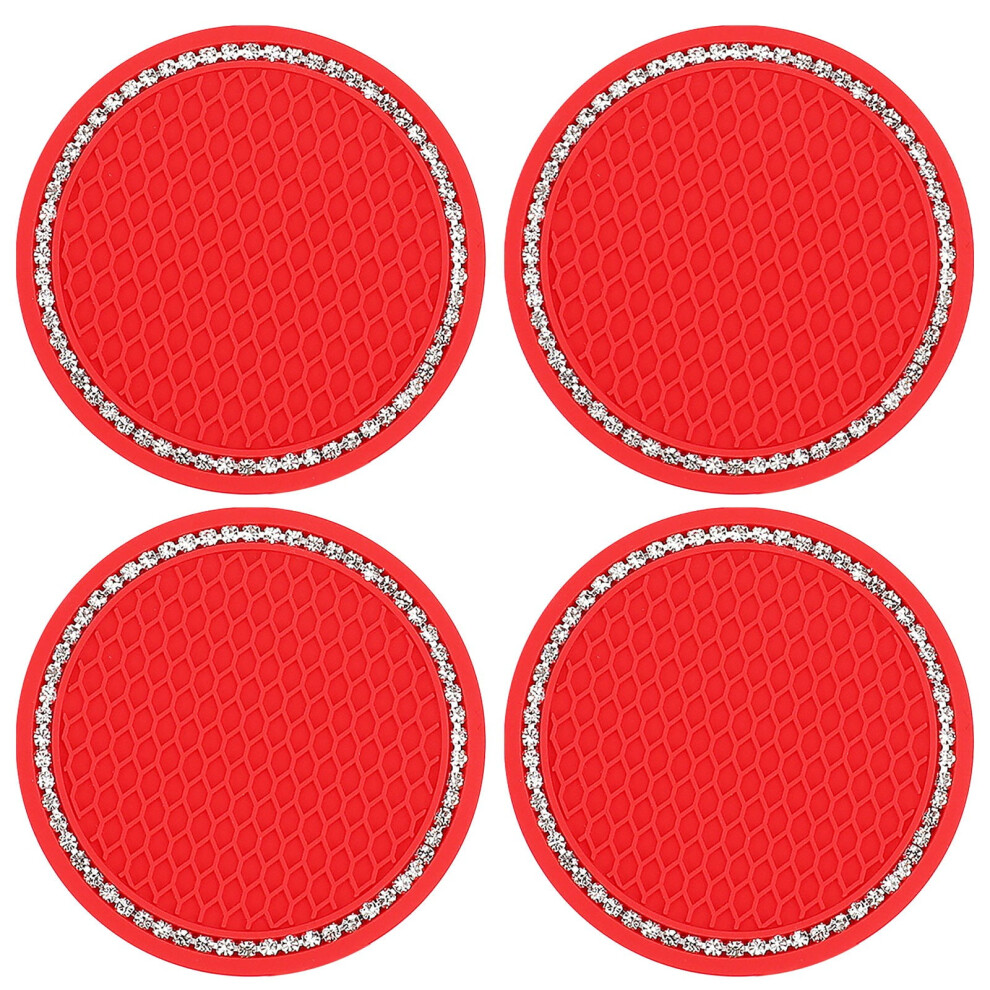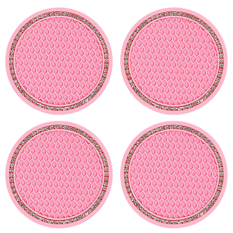 Bling Car Coasters Pack of 4 Silicone Non-Slip Rhinestone Crystal Drink Holders for Universal Vehicle Use in Pink