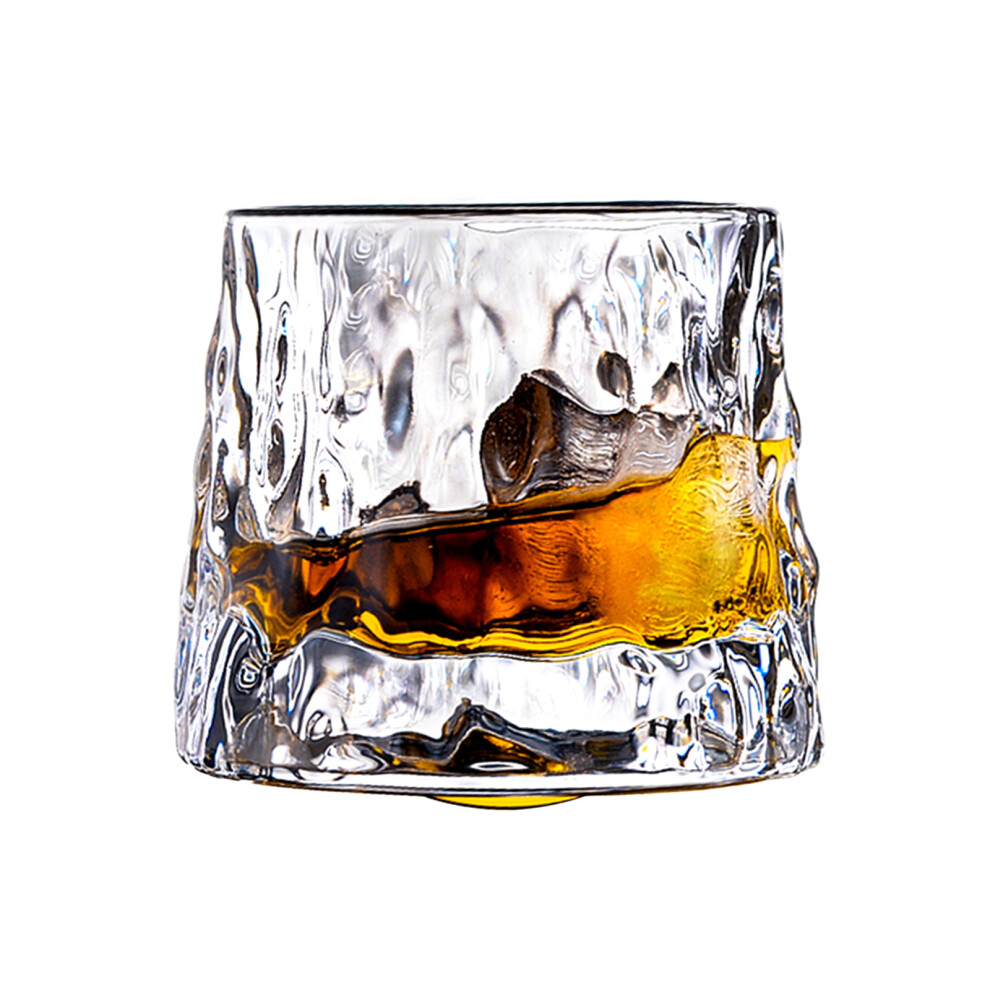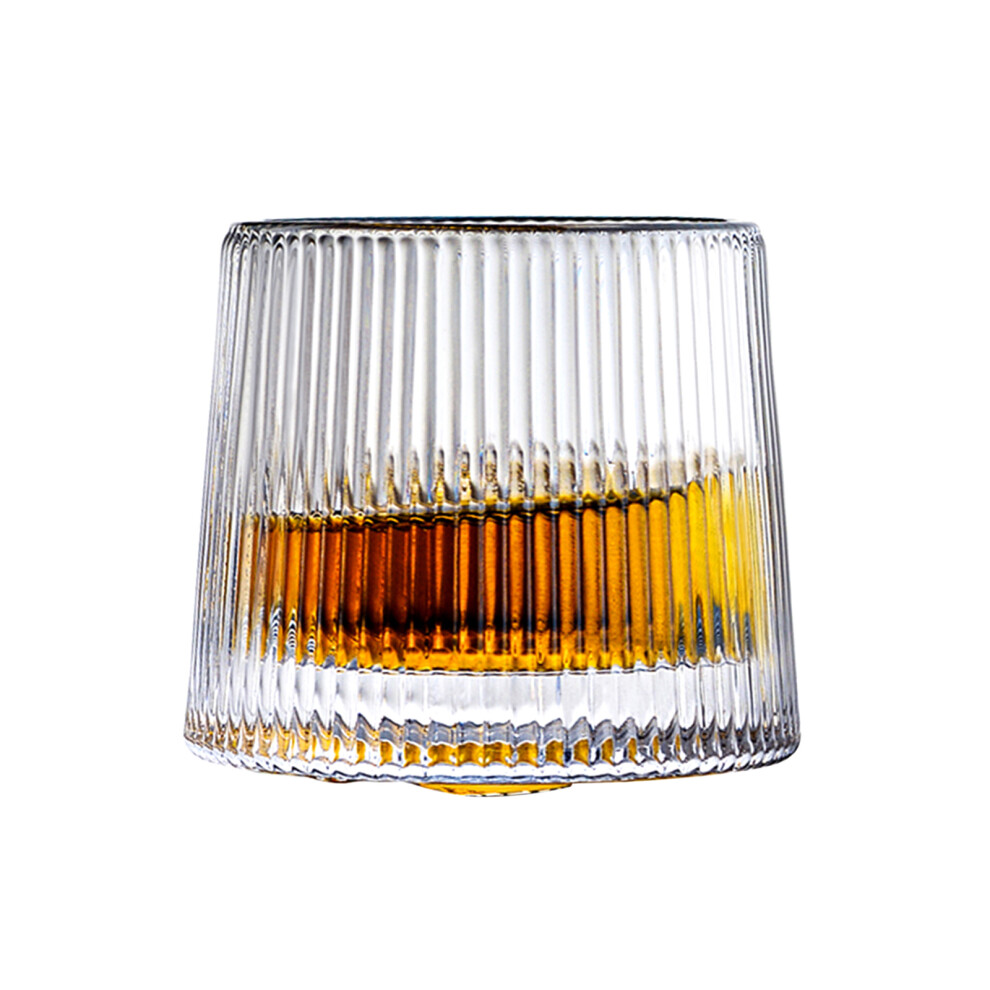 Whiskey Glasses Set of 2, Rotatable Design with Slanted Ribbed Texture, Crystal Glass Drinking Glasses with Coaster Included for Scotch Bourbon Cockta