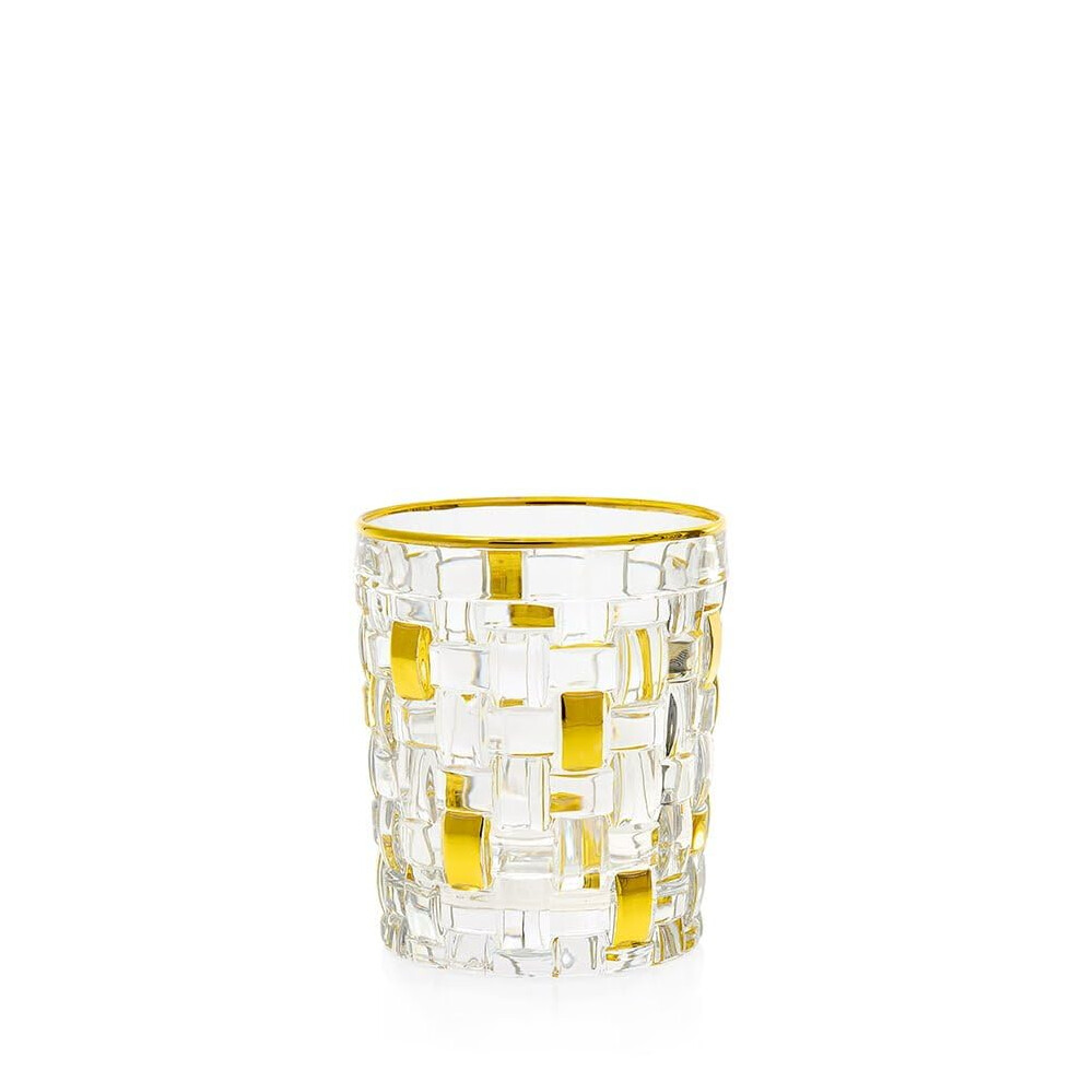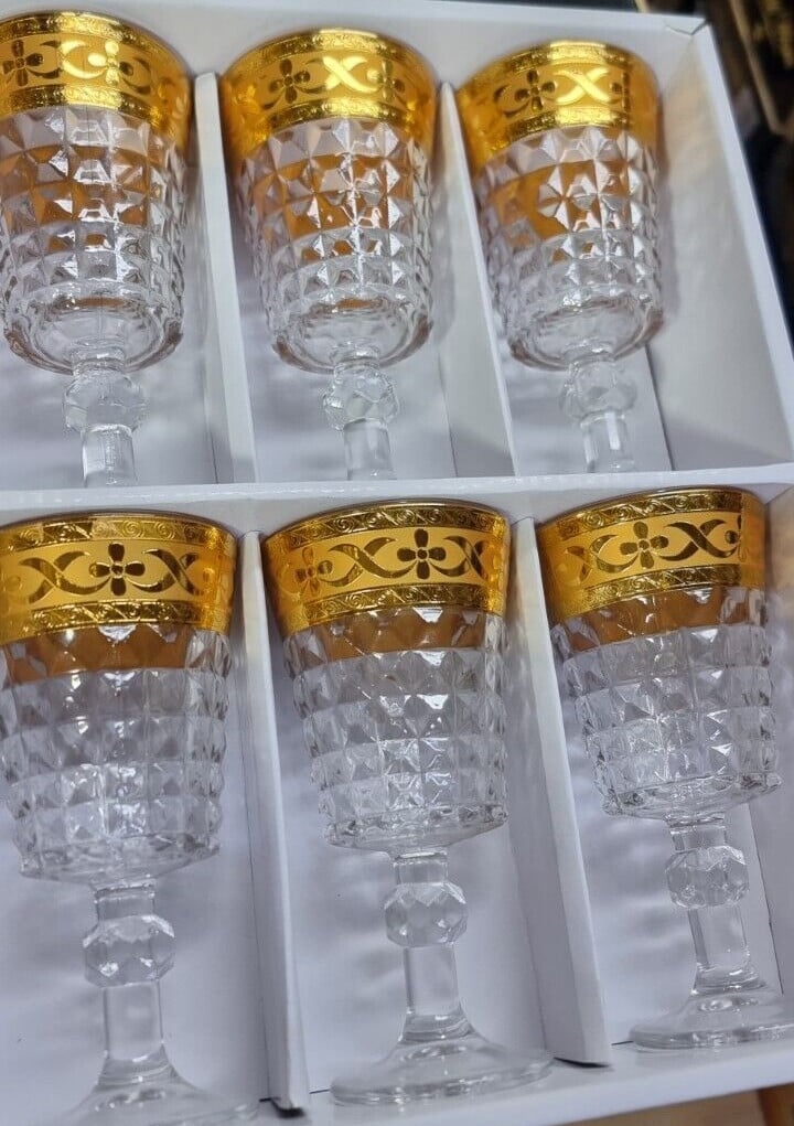 Set of 6 Elegant Gold Crystal Drinking Glasses 11oz HandPainted Gold Rimmed Water Tumblers