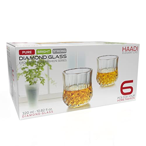HAADI Glasses Drinking Set of 6, 320ml Crystal Clear Tumbler and Shot Glasses for Wine, Whiskey, Juice, Gin, Cocktails, and Other Hot & Cold Beverages