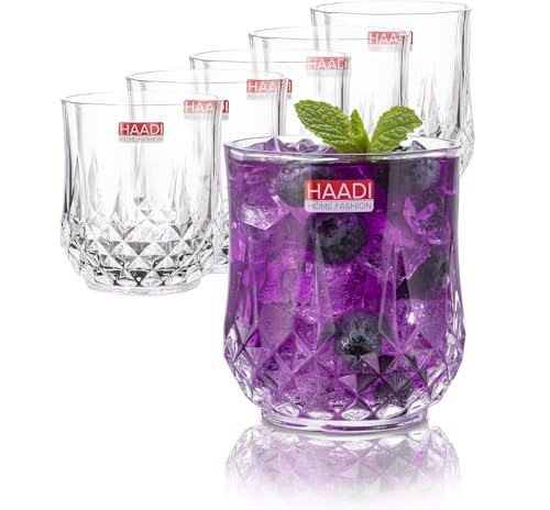 HAADI Drinking Glasses Set of 6 Crystal Clear Shot Water Glass Tumbler Highball Cocktail Glasses for Wine, Whiskey, Juice,Gin and Other Beverages (320ml)