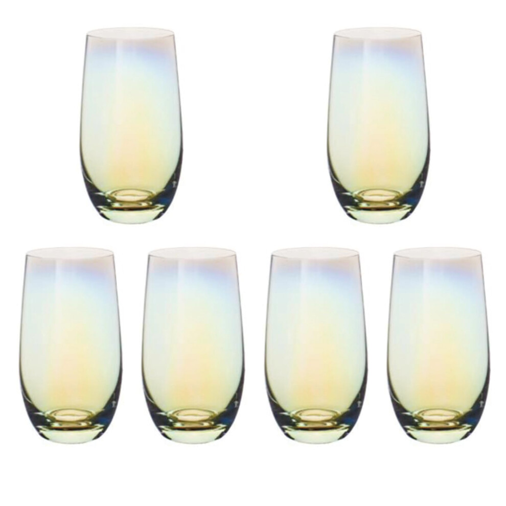 6 Set Crystal Iridescent Drinking Glasses for Water Juice Beverage Mojito Mixed Drinks 13.3 oz