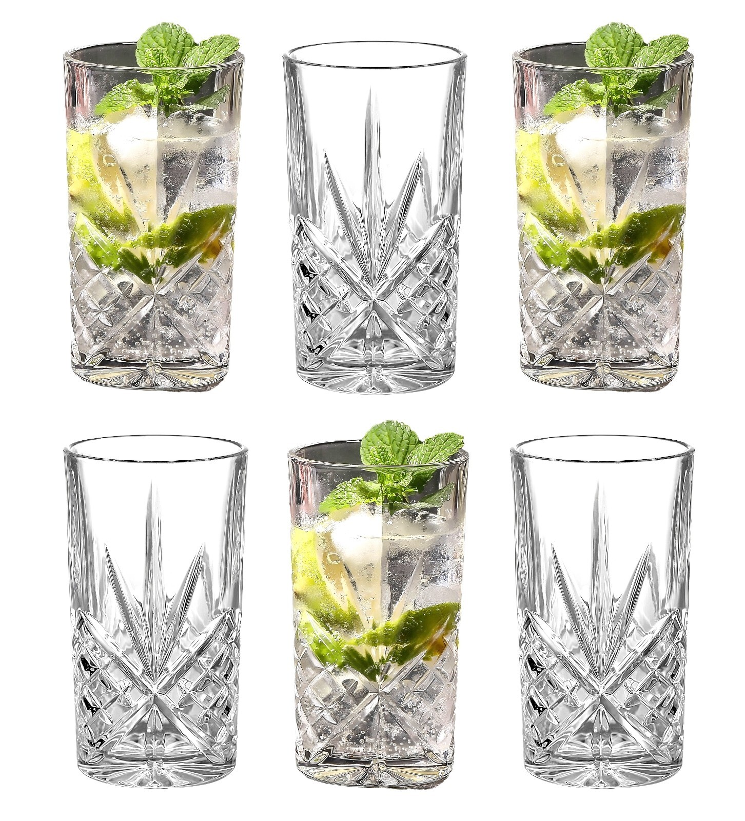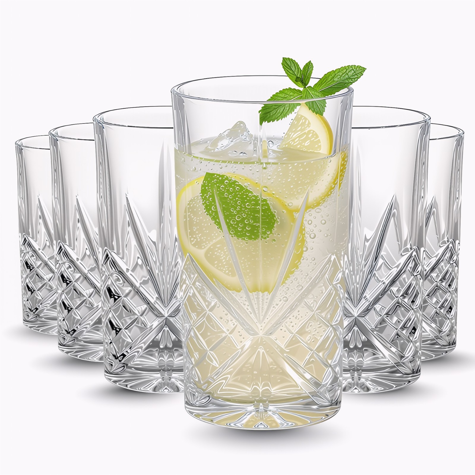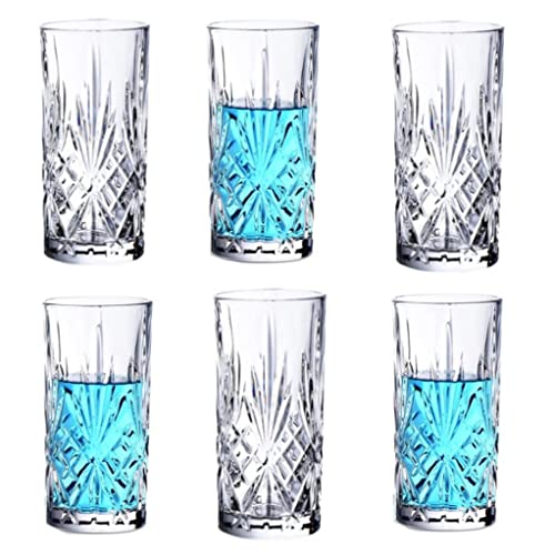Set of 6 x Crystal Effect Reusable Highball Soft Drink Iced Tea Drinking Glasses