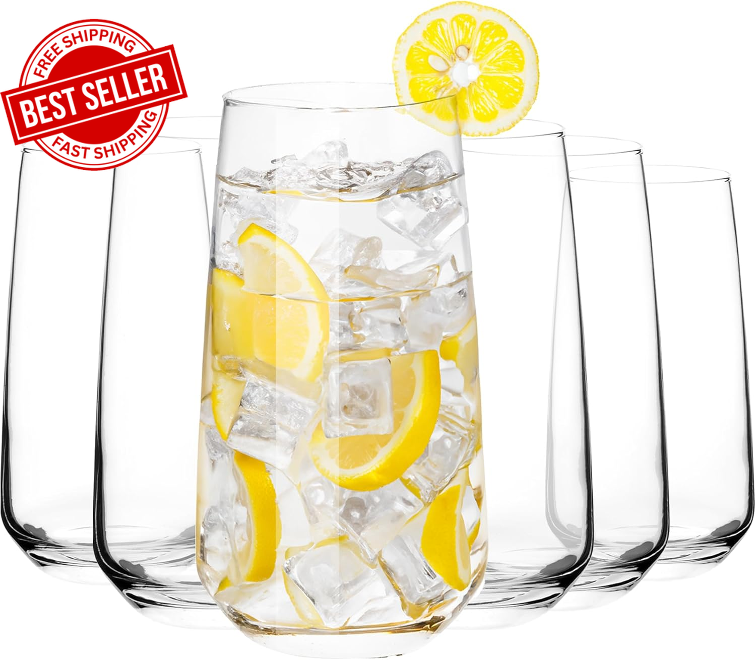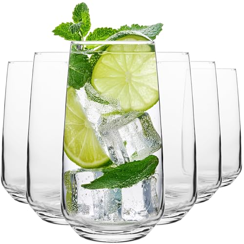 Crystal Drinking Glasses Set of 6, 16 oz Highball Glassware for Water and Cocktails, Dishwasher Safe