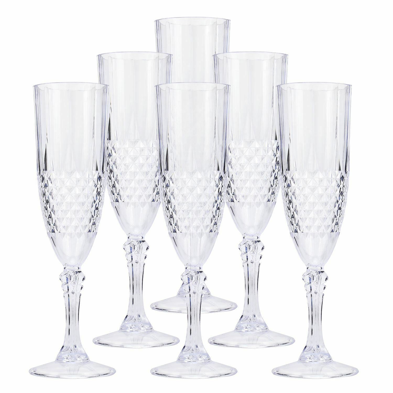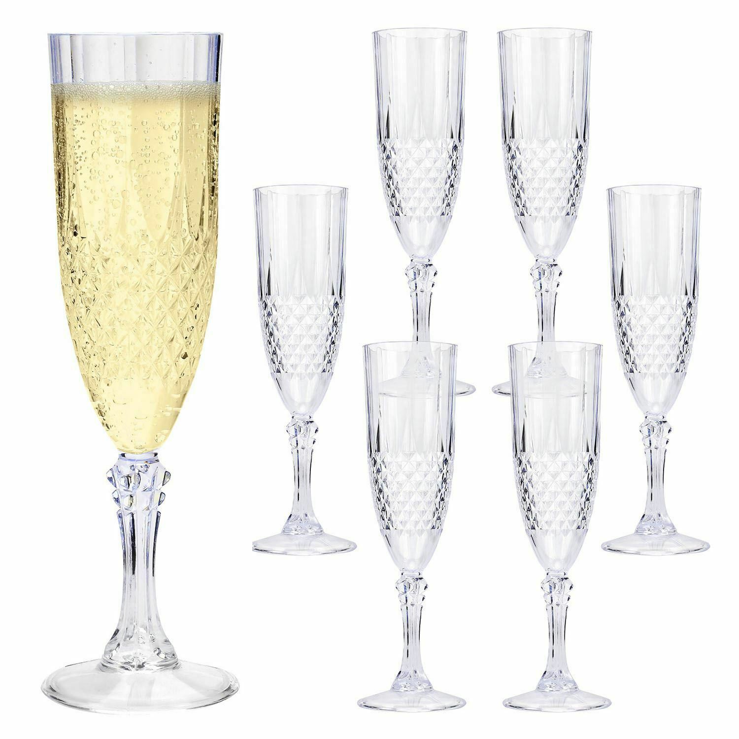 6 x Clear Crystal Effect Vintage Champagne Whisky Plastic Drinking Glasses