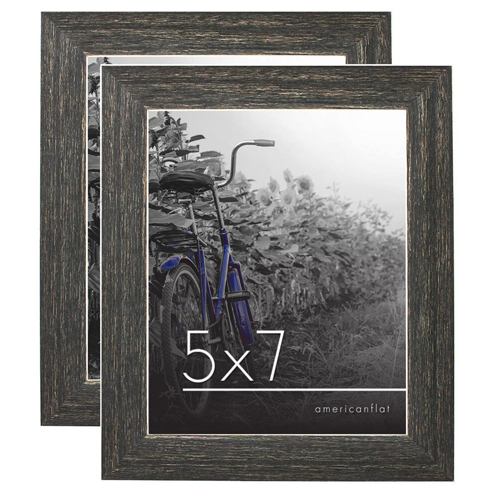 Americanflat 5x7 Picture Frame with Polished Crystal Clear Glass - Set of 2 - Hampton Collection - Distressed Wood Photo Frames for Tabletop and Wall