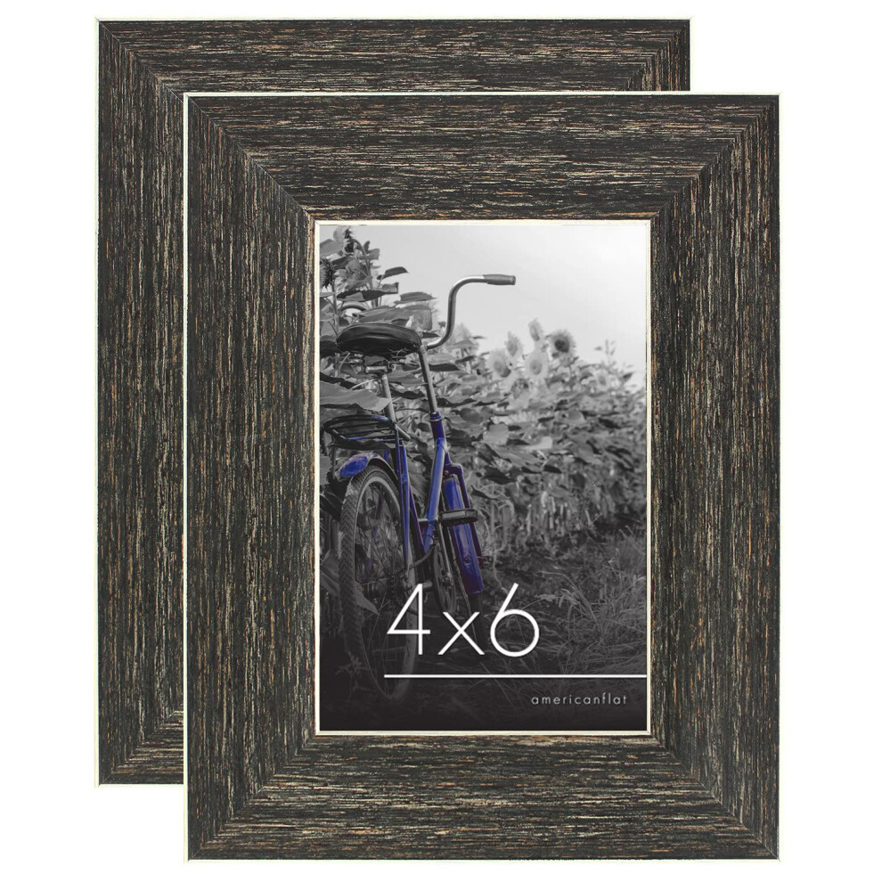 Americanflat 4x6 Picture Frame with Polished Crystal Clear Glass - Set of 2 - Hampton Collection - Distressed Wood Photo Frames for Tabletop and Wall