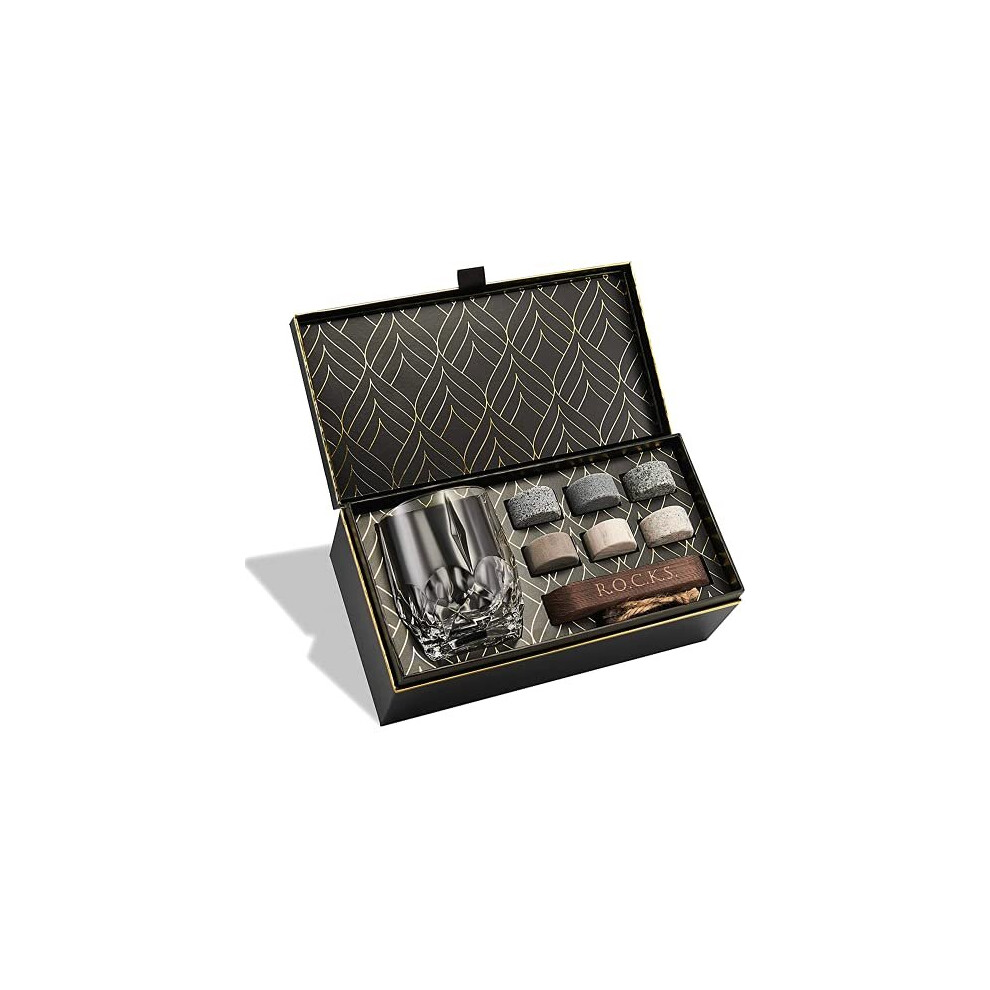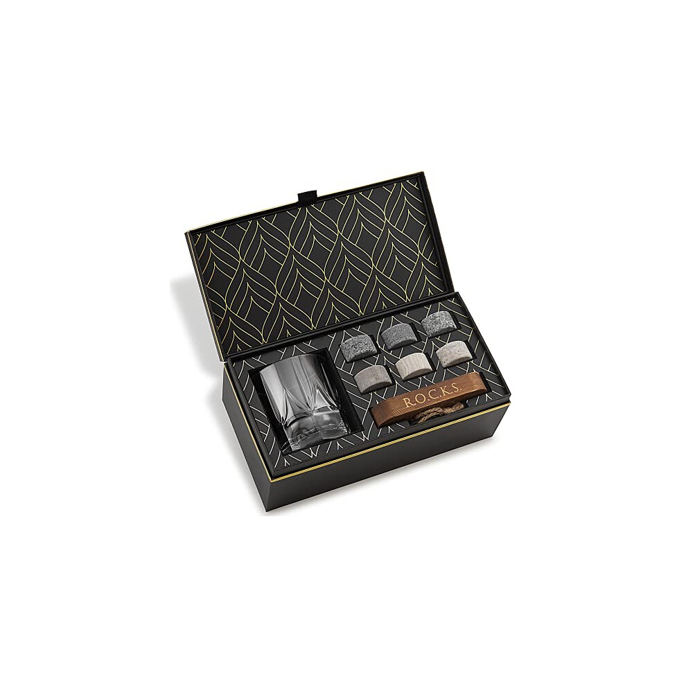 Whiskey Stones & World's First Eco-Crystal Glass Gift Set - 6 Handcrafted Granite Round Sipping Rocks - European Crafted Imperial Whiskey Tumbler