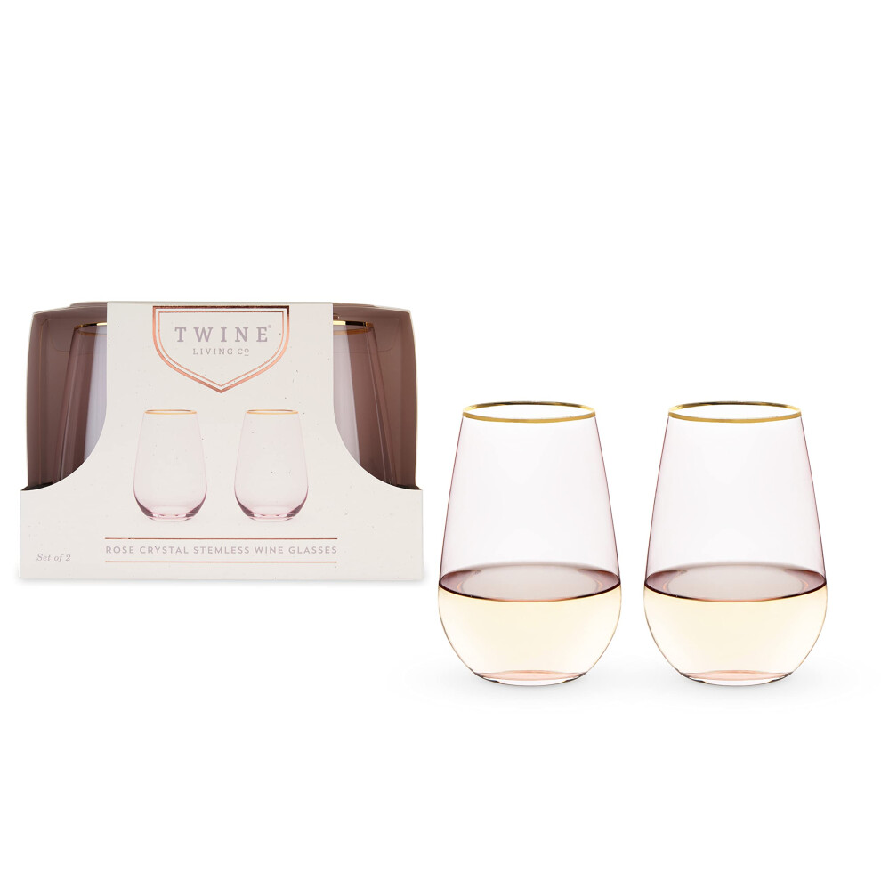 Twine Rose Wine glasses gold Rimmed Pink Tinted crystal Wine glass Set Stemless Wine glasses Set of 2 18 Ounces