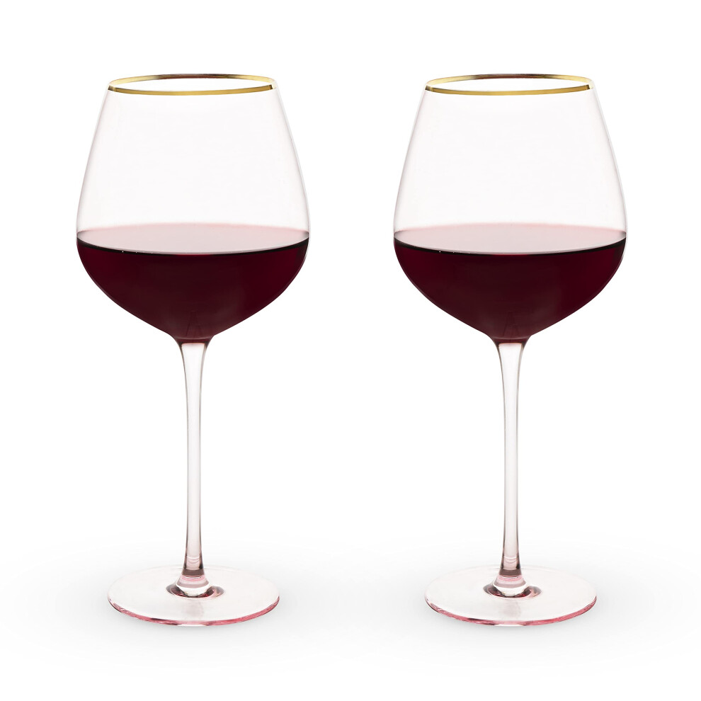 TWINE Rose Red Wine glasses gold Rimmed Pink Tinted crystal Wine glass Set Stemmed Wine glasses Set of 2 20 Ounces