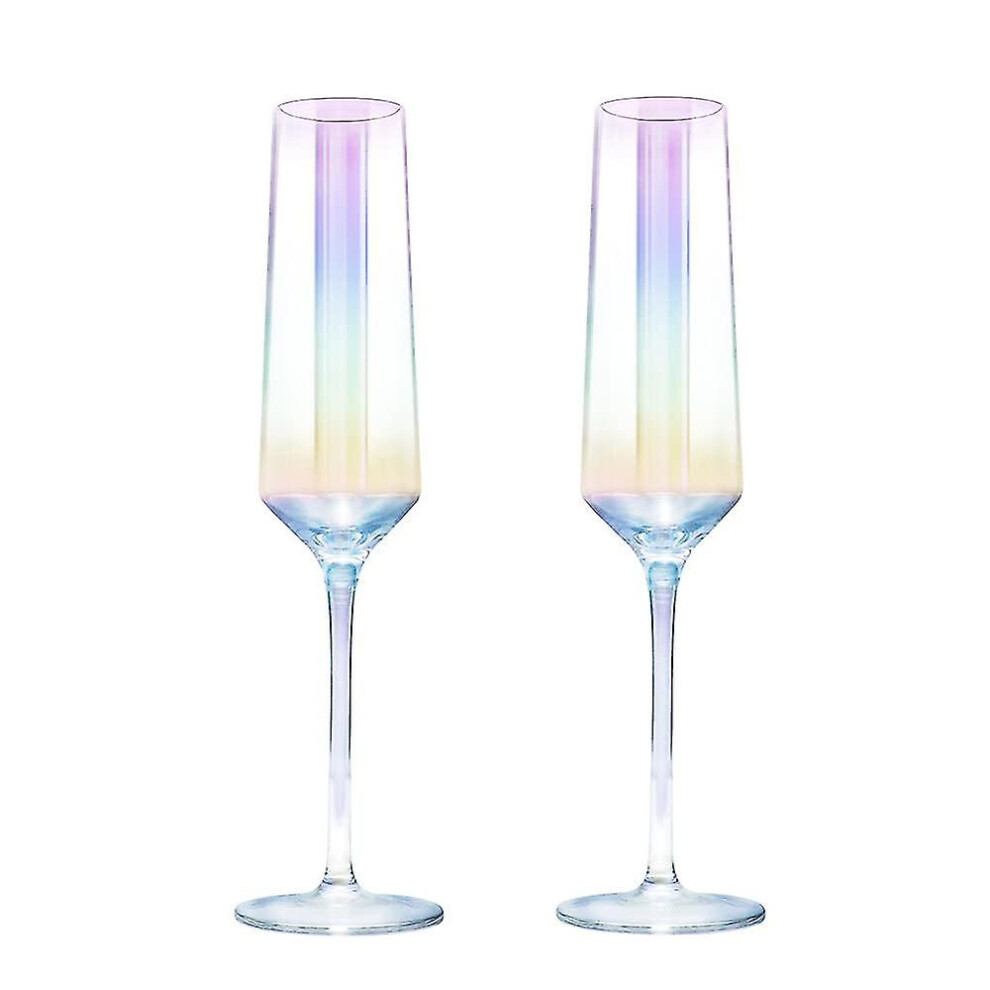 Gutsdoor Crystal Champagne Flutes Glass Set of 2 Iridescent Champagne Glass
