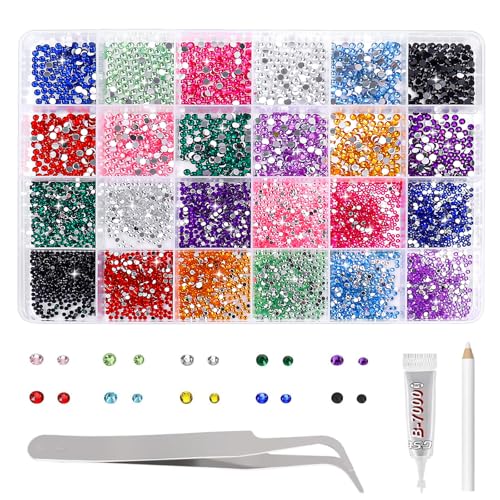 Resin Rhinestones Kits, 12 Colors 2mm and 3mm Flatback Round Rhinestones with 1 Tweezers Glue Pen, Bedazzling Non Hotfix Crystal Gems for Craft Nail Art Face Makeup Tumblers Mugs Clothing
