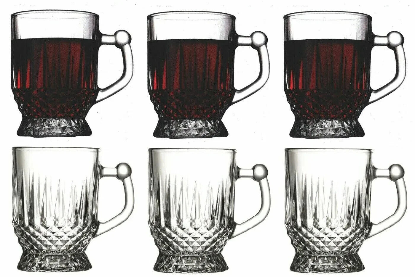 Crystal Glass Set Of 6 Tea Coffee Glasses With Handles Glass Tea Mugs Cups New