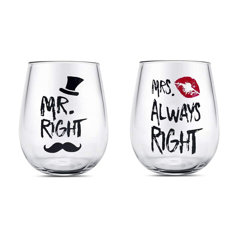 Mr Right Wine Couple Glasses 14oz Stemless Crystal Wine Glass Mugs Set,Wedding Mug for Bride and Groom for Couple Anniversary,Engagement,Christmas