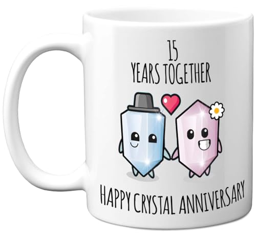 15th Anniversary Mug Gift for Men Women - 15 Years Together - Happy Crystal Anniversary Wedding for Husband Wife Mum Dad Brother Sister, 11oz Ceramic Coffee Mugs Gifts