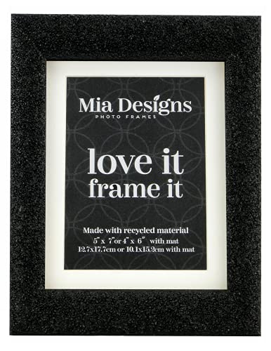 Mia Designs Picture Frame Crystal Black 5x7 13x18 Cm Photo Frame for Desk, Wall and Table Top in Eco-friendly PS material Environmentally Friendly Freestanding Frame