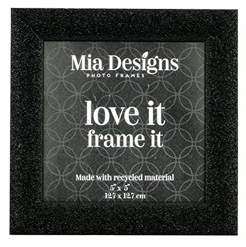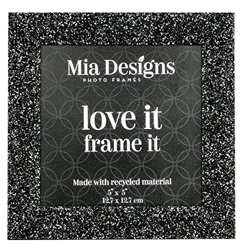 Mia Designs Picture Frame Crystal Black & Silver 5x5 13x13 Cm Photo Frame for Desk, Wall and Table Top in Eco-friendly PS material Environmentally Friendly Freestanding Frame
