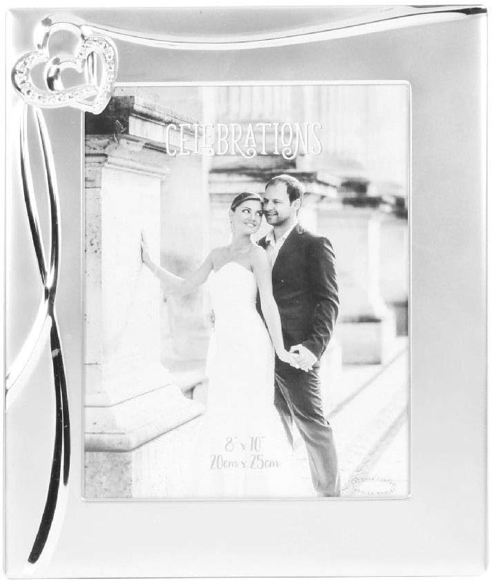Wedding Photo Frame 10"x8"Crystal Hearts Matt Silver