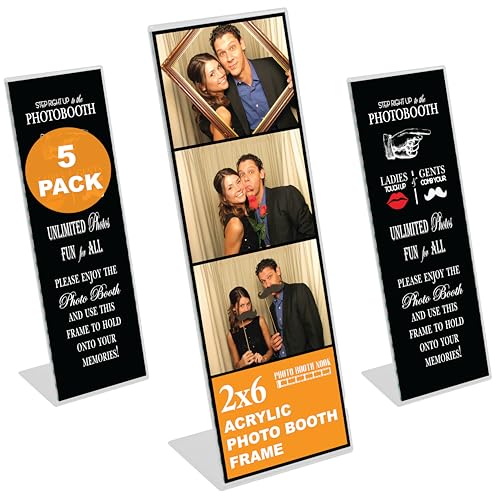 Photo Booth Nook | 2x6 Slanted Photo Booth Frames (5 Count) | Crystal Clear Acrylic Photo Booth Picture Frame with Black Inserts