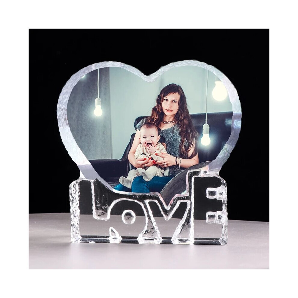Heart Shaped Crystal Photo Frame With Laser Engraved Personalized Picture Glass Wedding Souvenir Birthday