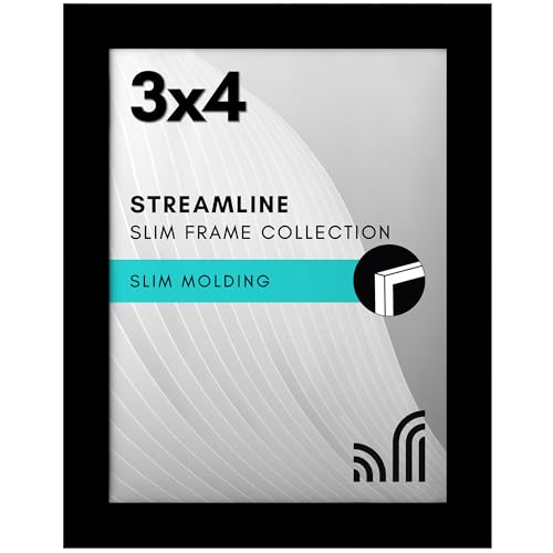 Americanflat 3x4 Picture Frame with Polished Crystal-Clear Glass - Streamline Collection - Thin Border Photo Frame for Tabletop Display - Easel Stand Included - Black