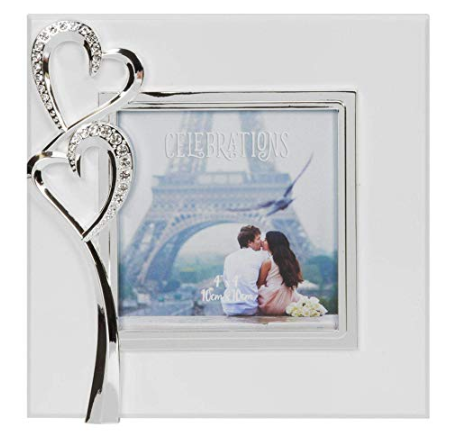 4" X 4" - SILVER PLATED & CRYSTAL DOUBLE HEART PHOTO FRAME