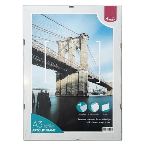 Picture Frames A3 Clip frame Frameless Photo Poster Certificate Frame with Crystal Clear Perspex Acrylic (A3 Size - 297 x 420 mm) 1 Pack