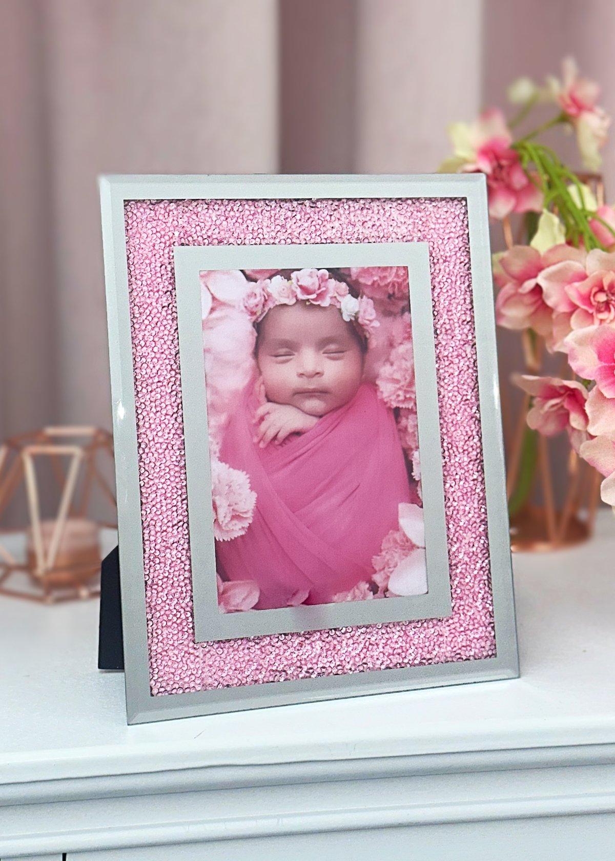 LED Crystal Crushed Diamond Mirrored 20x25cm Photo Picture Frame Home Decor