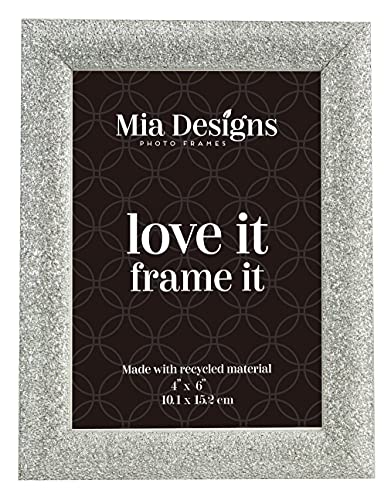 Mia Designs Picture Frame Crystal Gun Metal 4x6 (10x15cm) Photo Frame for Desk, Wall and Table Top in Eco-friendly PS material Environmentally Friendly Freestanding Frame