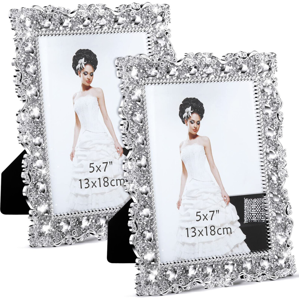 2-pack with crystal decoration photo frame wedding rhinestone decoration desktop photo frame 7 inch for family and