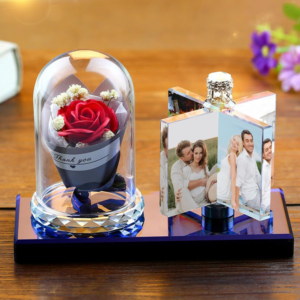 Personalised 3D Crystal Photo Rotating Frame with Light, Custom Glass Picture Night Lamp