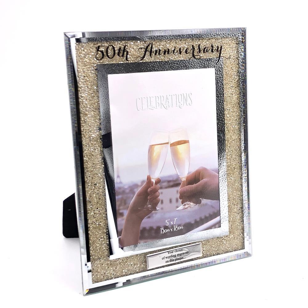 50th Wedding Anniversary Photo Frame Golden Mirror Glass Crystal Diamante Gift