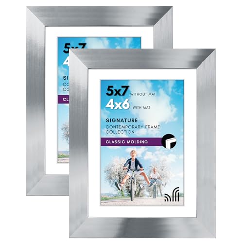 Americanflat 7x5 Photo Frames with Polished Crystal-Clear Glass - Set of 2 - Use as 6x4 Photo Frames with Mount or 7x5 Frame without Mount - Frames for Tabletop and Wall Display - Silver