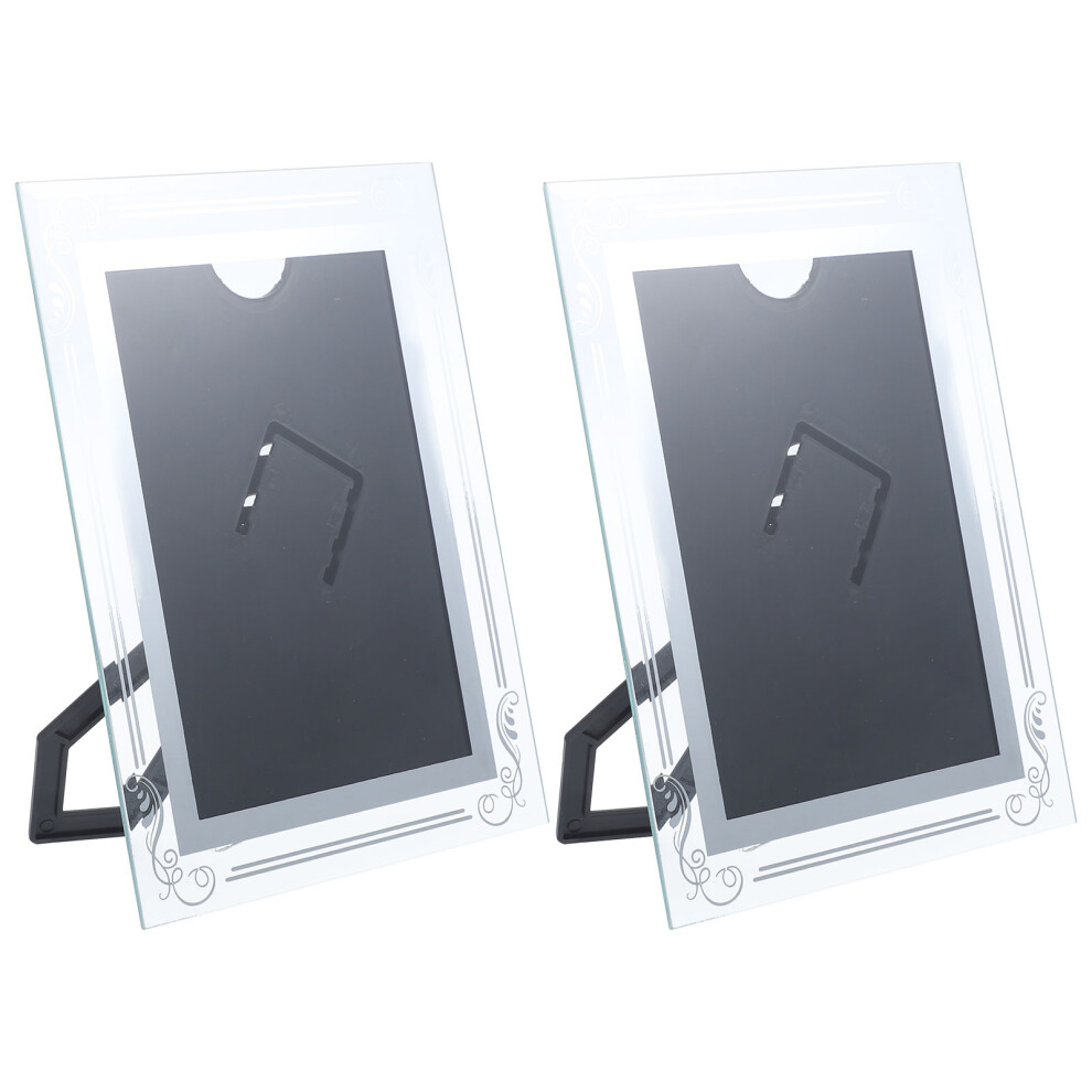 2 Pcs Crystal Glass Photo Frame Baby Clear Picture Frames For Desk