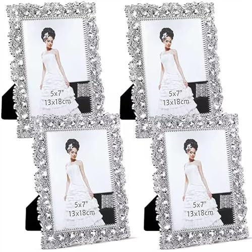 Yookeer 2 Pack 5 x 7 Inch Crystal Picture Frame Wedding Photo Frame Jewel Picture Frame with Rhinestones Photo Gift for Wedding Valentines Day Table Top Desktop Display (Rhinestones)