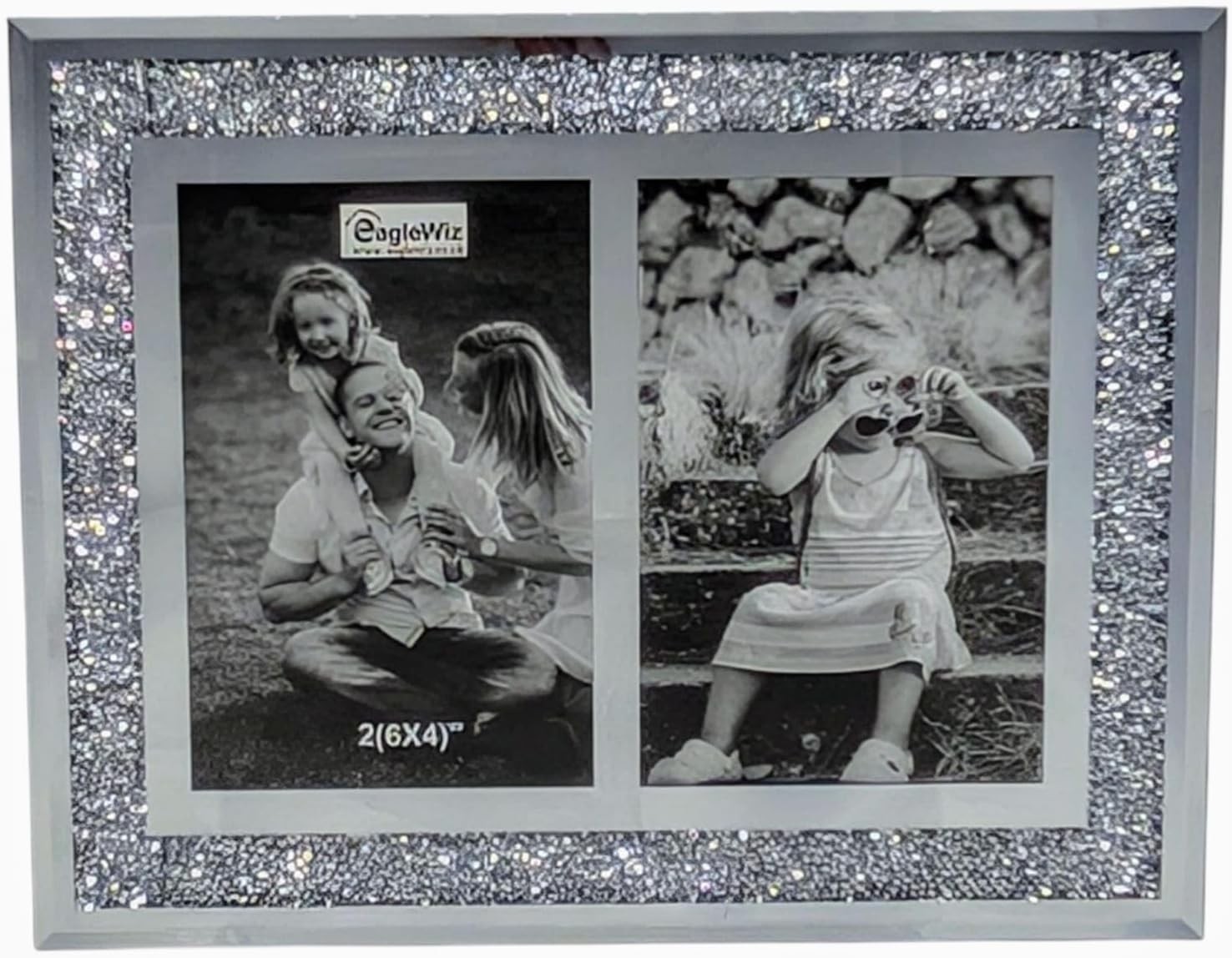 EagleWiz GLASS MIRRORED CRUSHED CRYSTAL DIAMOND,DOUBLE PHOTO FRAME,TWO PHOTOS S