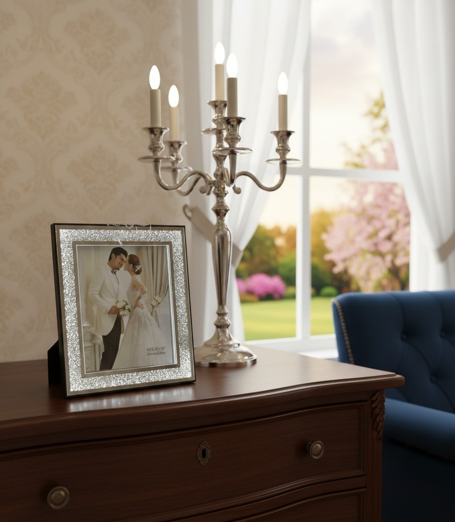 8x10 '' LED Crushed Diamond Crystal Photo Frame Silver Tabletop Display 25x20 Cm