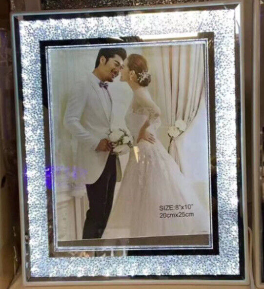 LED Crystal Crushed Diamond Mirrored 8x10Inch Photo Picture Frame Home Decor